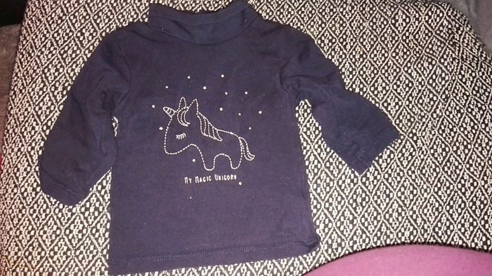 Le premier est bleu marine avec motif licorne brodé de la marque Kiabi il y a un petit noeud sur chaque manche le second rose foncé avec l'inscription « in love with mom & dad» de la marque TAO, le troisième est blanc (légèrement grisé) avec l'inscription «love my mum» et motif lapin le dernier est rose pâle inscription love. Tous col roulé. Très bon état. Taille 3 mois. N'hésitez pas à créer des lots une réduction automatique s'applique et je ne suis pas à l'abri de vous faire une offre supplémentaire ! :)