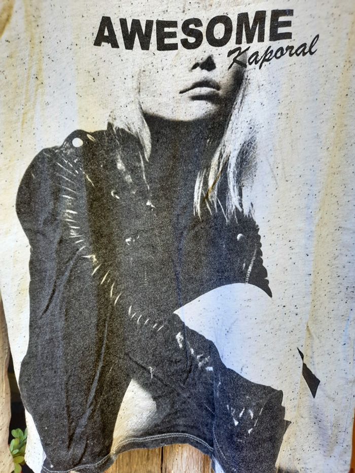 Superbe haut manches longues de la marque Kaporal, gris clair moucheté noir, voile noir transparent taille L, très bon état