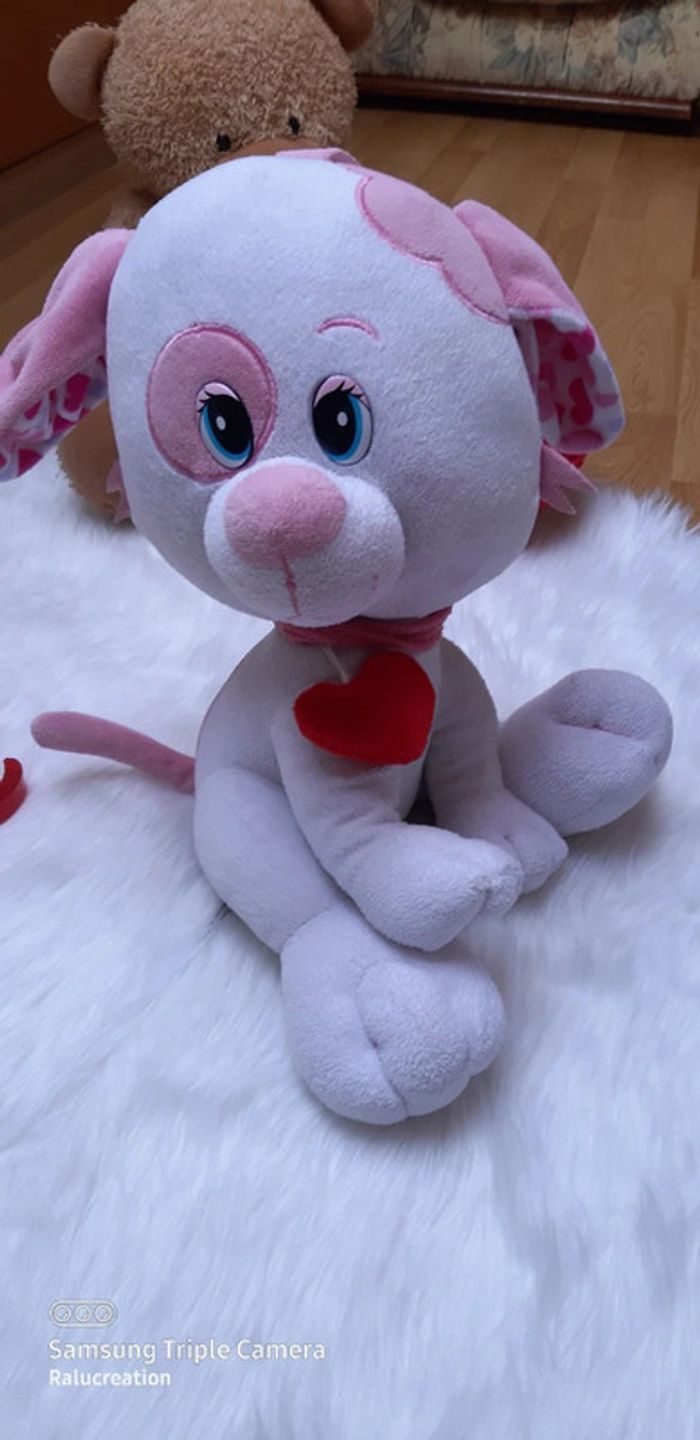 💗Grand peluche chien blanc rose avec cœur rouge Saint Valentin - photo numéro 1