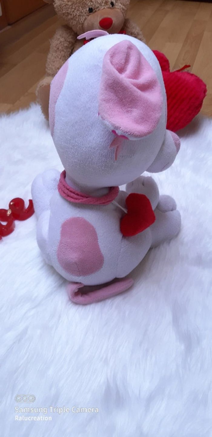 💗Grand peluche chien blanc rose avec cœur rouge Saint Valentin - photo numéro 2