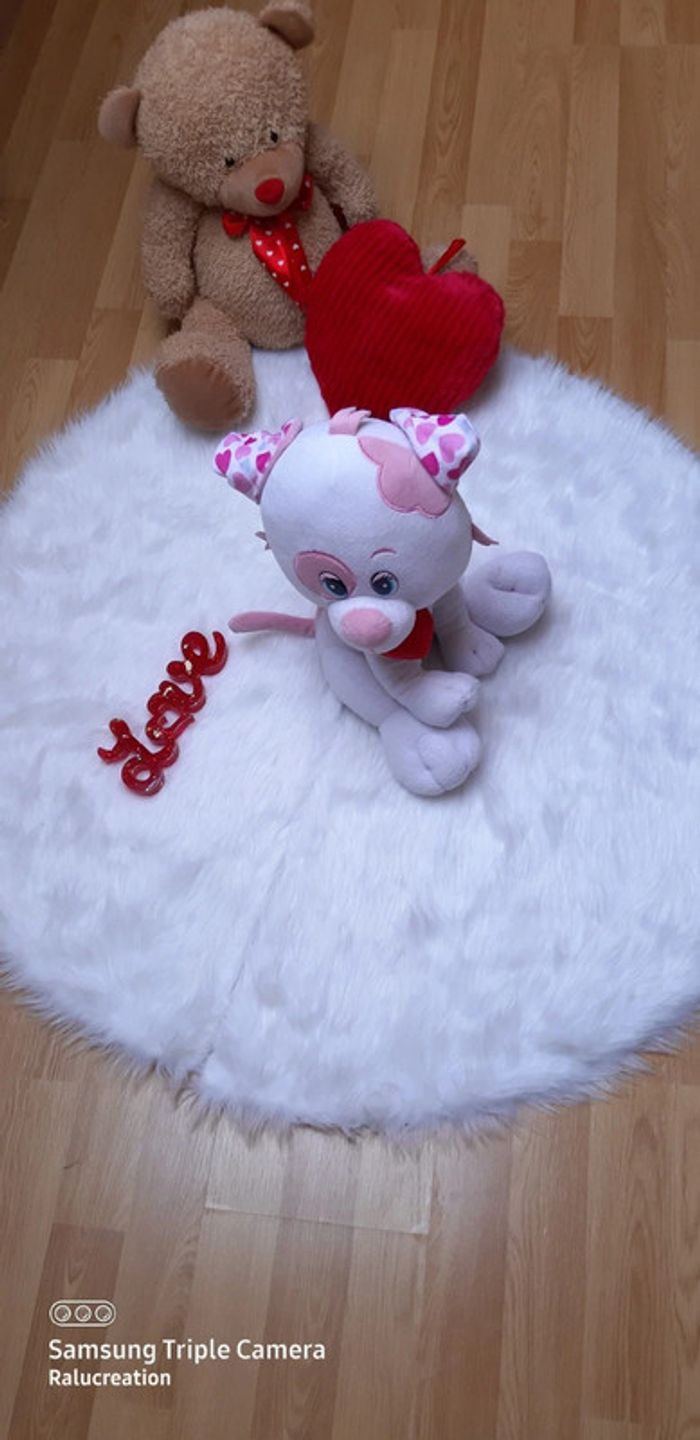 💗Grand peluche chien blanc rose avec cœur rouge Saint Valentin