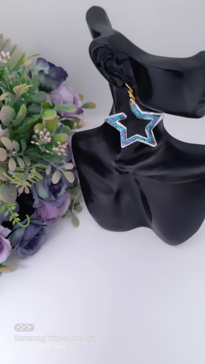 Boucles d'oreilles 🟣paillettes étoiles 🟣 - photo numéro 2