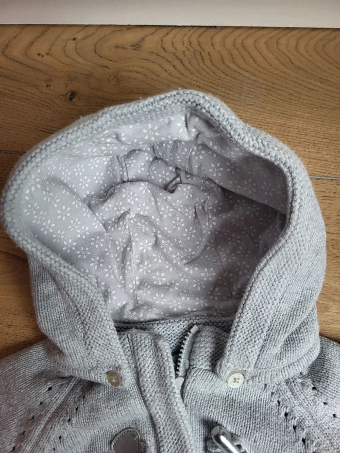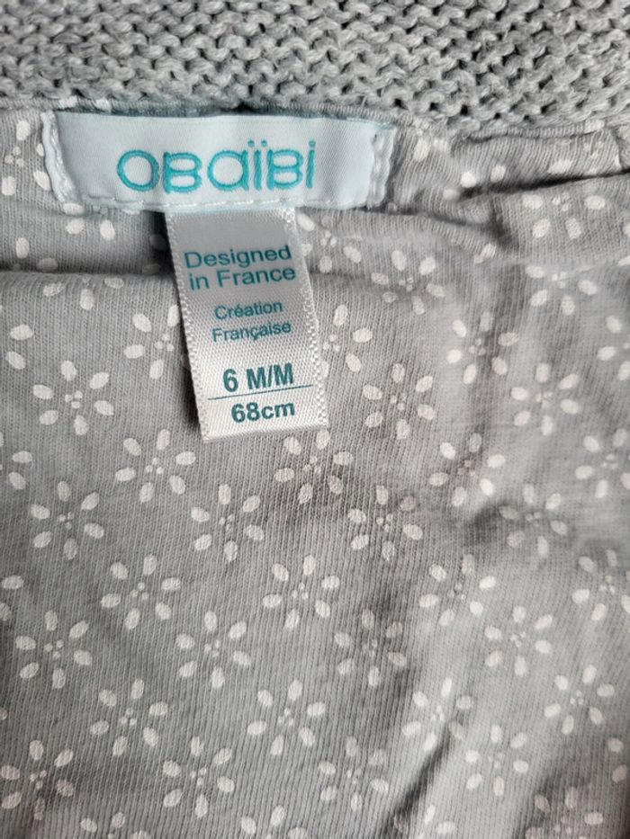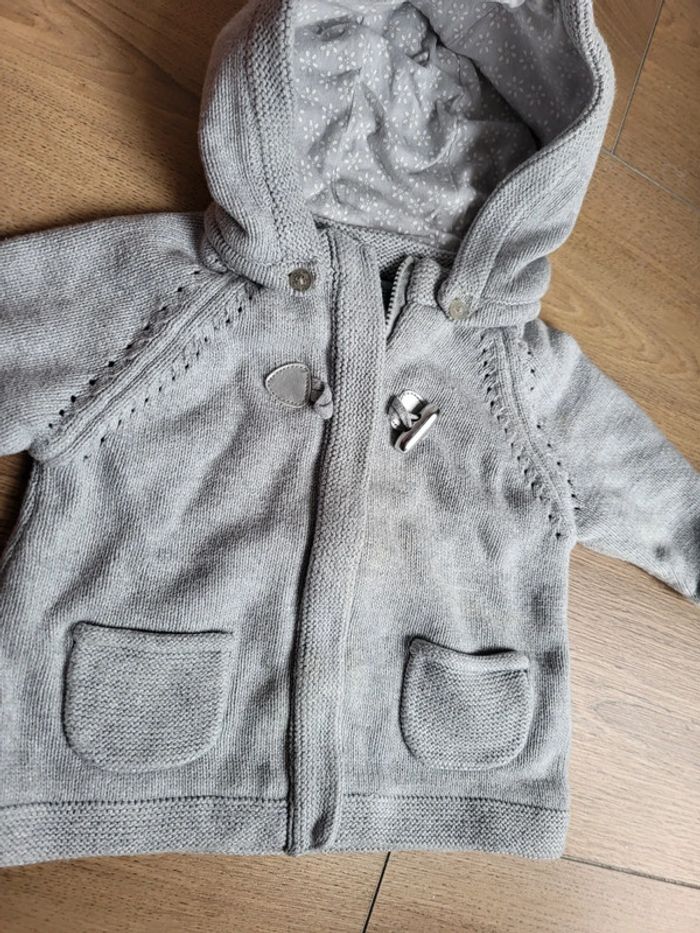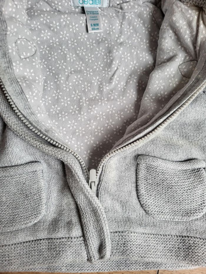 Joli pull zippé à capuche gris Taille 6 mois En très bon état