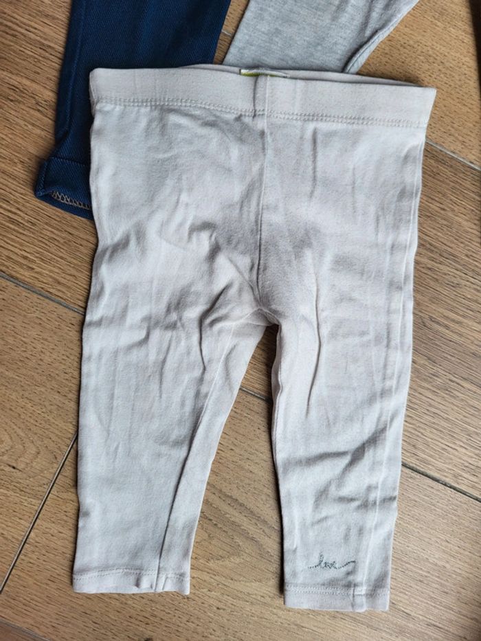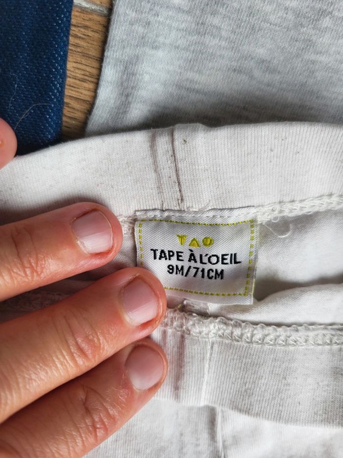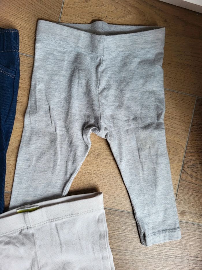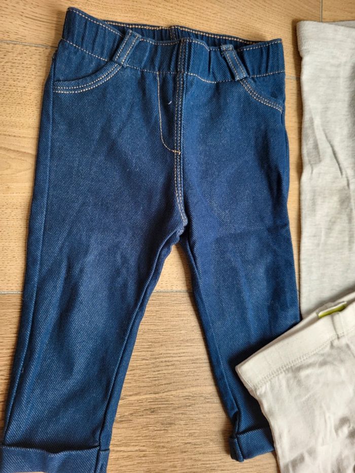 Lot de 3 leggings en très bon état Taille 9 mois Un effet jean (fin) et un gris et un blanc Différentes marques N'hésitez pas à faire des lots 👍