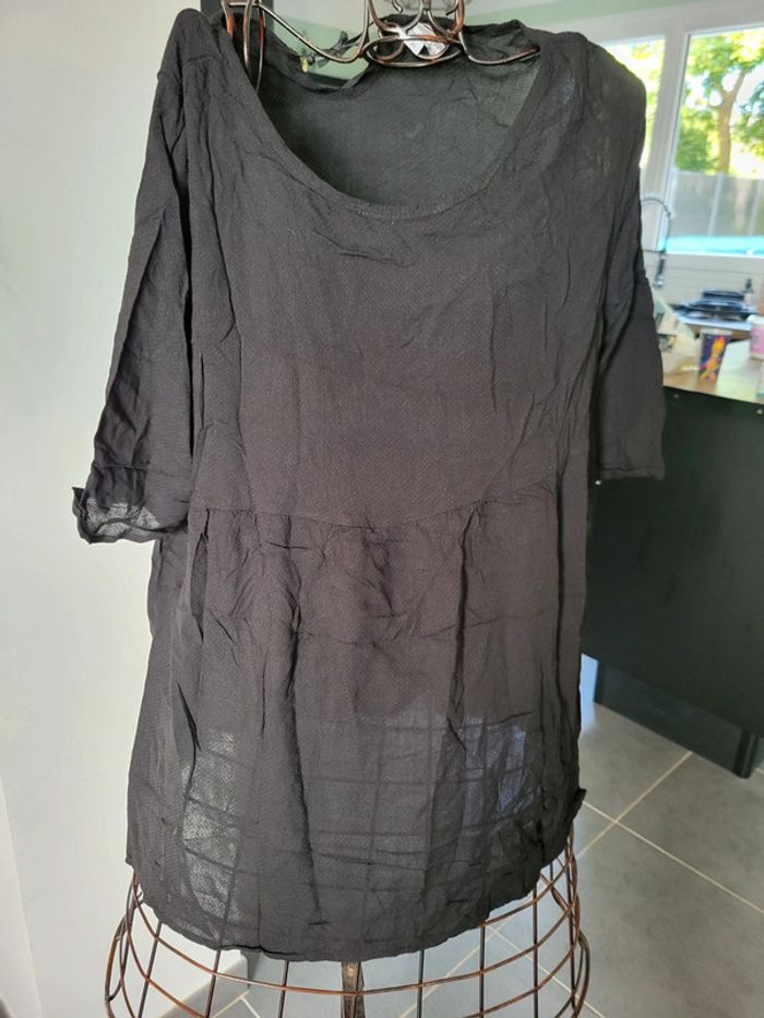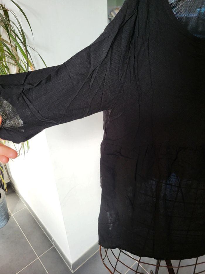 Chemise noire, manches longues, très fine et transparente, idéale avec débardeur noir en dessous Manches 3/4 Taille 40 Marque Vertbaudet Faire un lot svp car ne fais pas d'envoi pour 1€ merci 👍