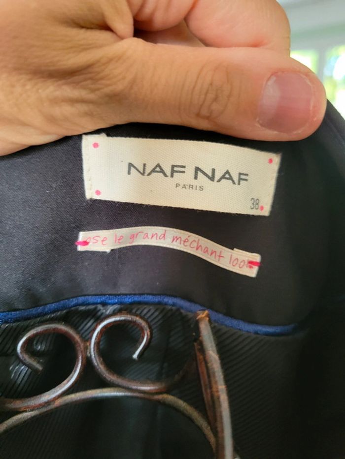 Jolie veste costume noire En excellent état, peu utilisée Idéale pour une occasion, mais aussi sur un jean avec tee-shirt ou chemise dessous Marque Naf Naf