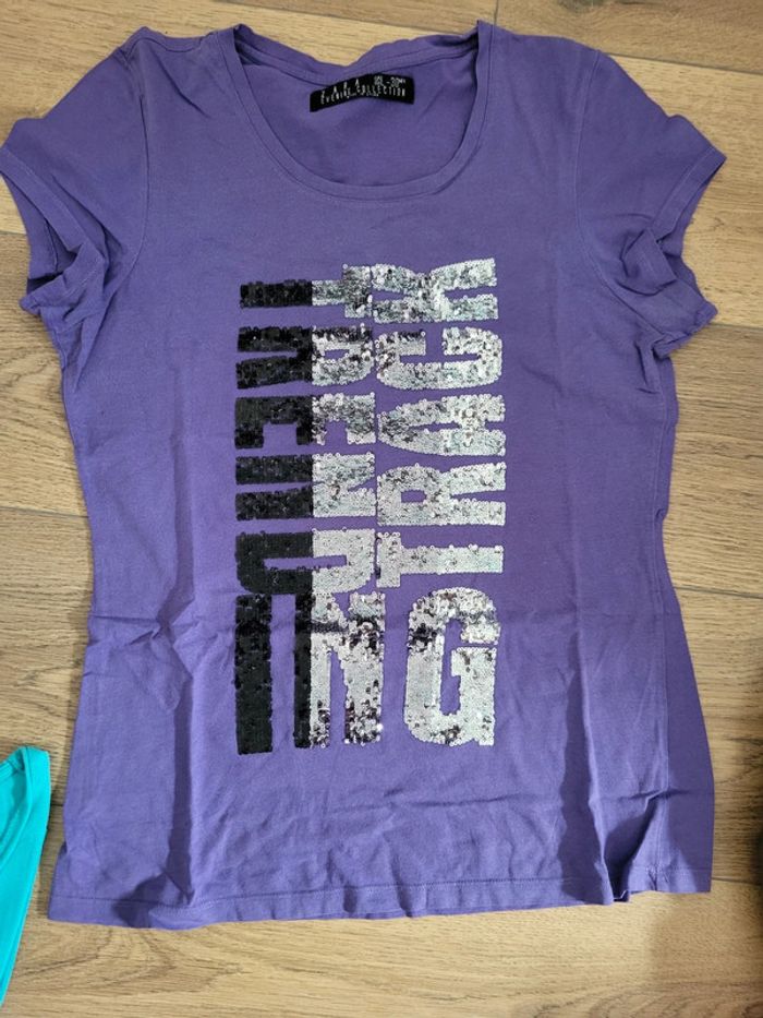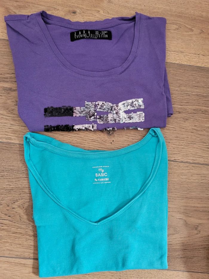 Lot de 2 tee-shirts manches courtes En très bon état Un couleur bleu cyan et l'autre violet Taille plutôt M