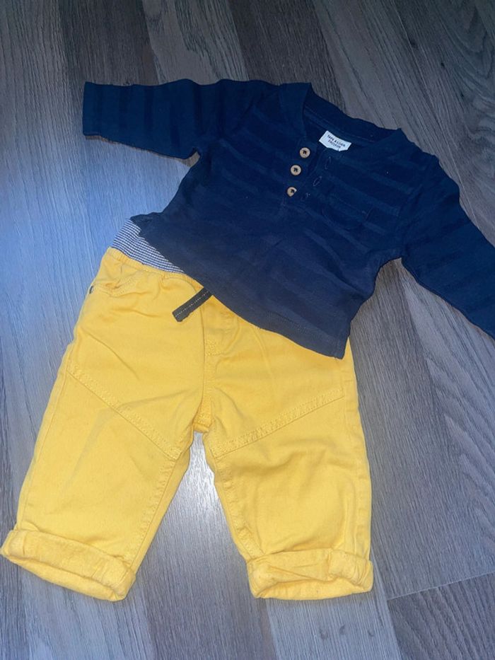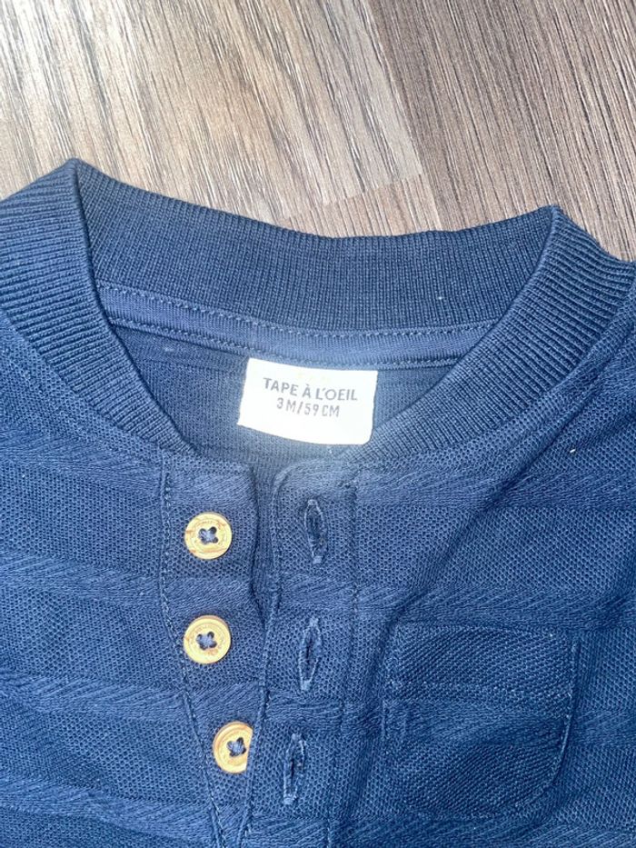 Ensemble 3 mois Pantalon : double chaud, sans marque T shirt : Tape à l’œil #deb68130vetement3moisgarcon #tapealoeil #pantalon #chaud #polo #tenue