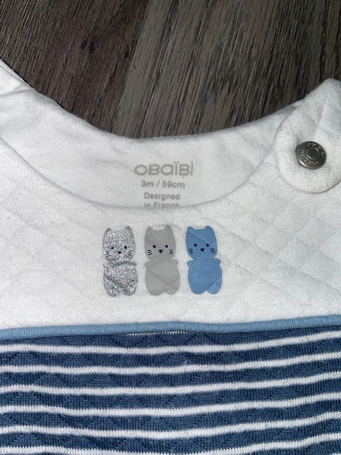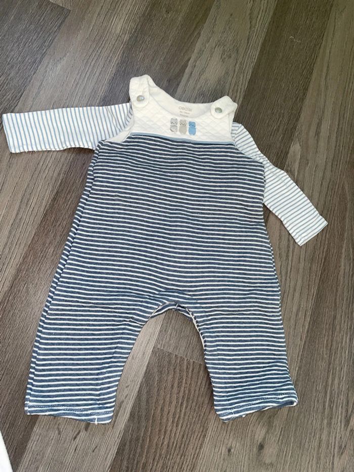 Ensemble 3 mois Obaibi avec une combinaison chaude et un bodies manches longues #deb68130vetement3moisgarcon #ensemble #combinaison #rayures #bodies #obaibi