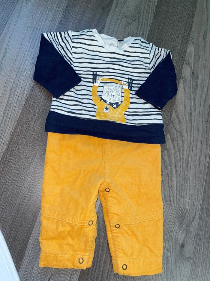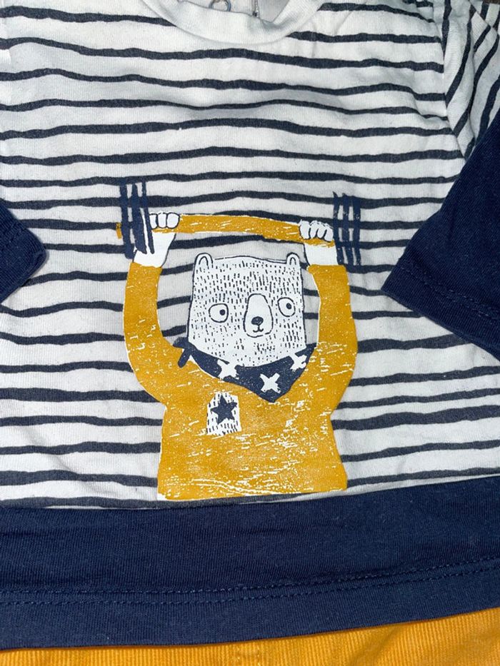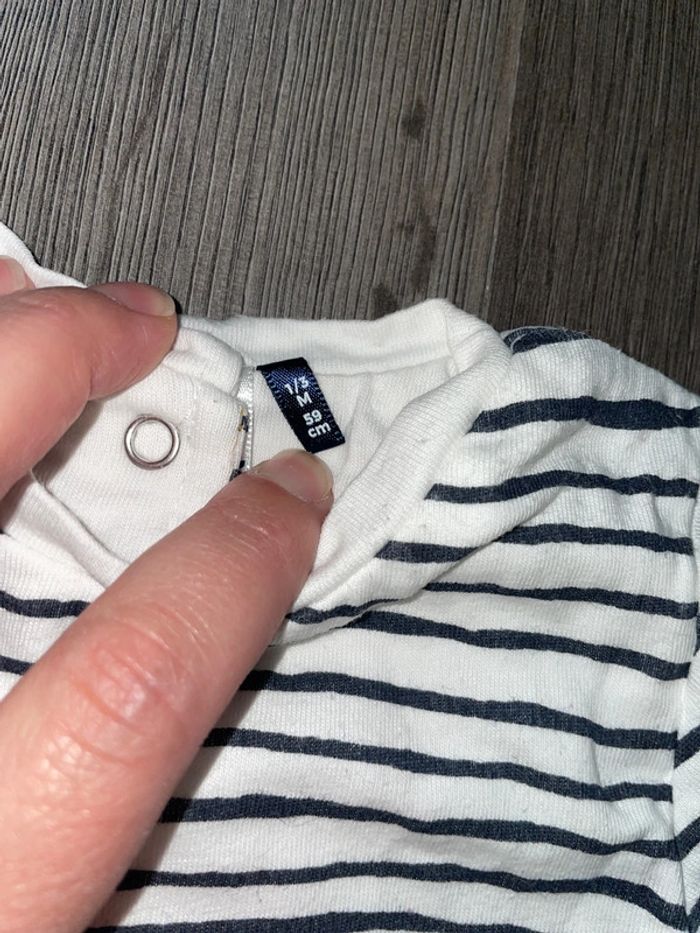 Combinaison 3 pommes 1/3 mois Ouverture pression entre les jambes #deb68130vetement3moisgarcon #3pommes #combinaison #ours #rayures #pression