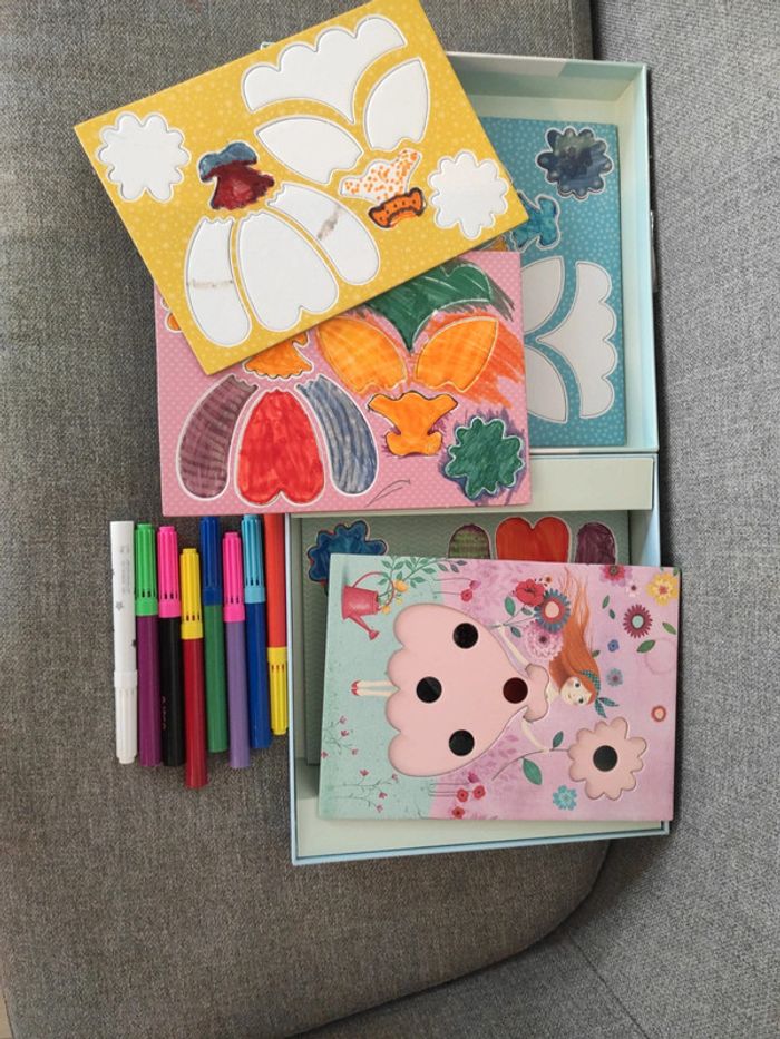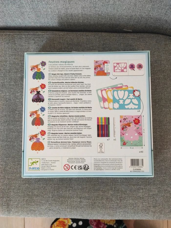 Coffret Djeco feutres magiques Les feutres fonctionnent, certaines plaques de dessins sont coloriées ☀️ Prix sur les lots