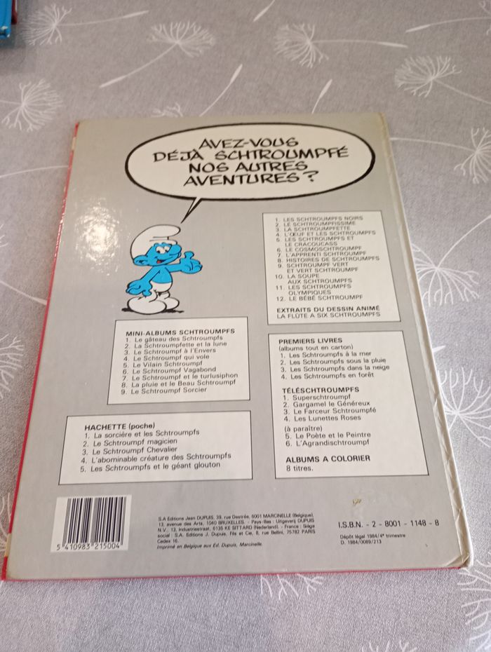 Bande dessinée "Le bébé Schtroumpf" de la série "4 histoires de Schtroumps". Editions Dupuis, 1984, première édition. Très bon état intérieur, couverture en bon état.