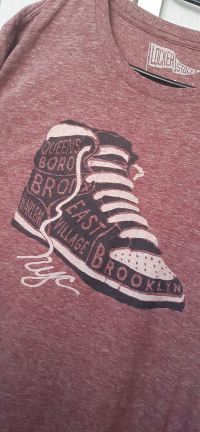 Neuf jamais porté, polyester coton rayon. Rose bordeaux. Marque Locker stock. Motif imprimé chaussure. #lauralolo84neuf #lauralolo84hommexl #lauralolo84homme #lauralolo84hommeteeshirt