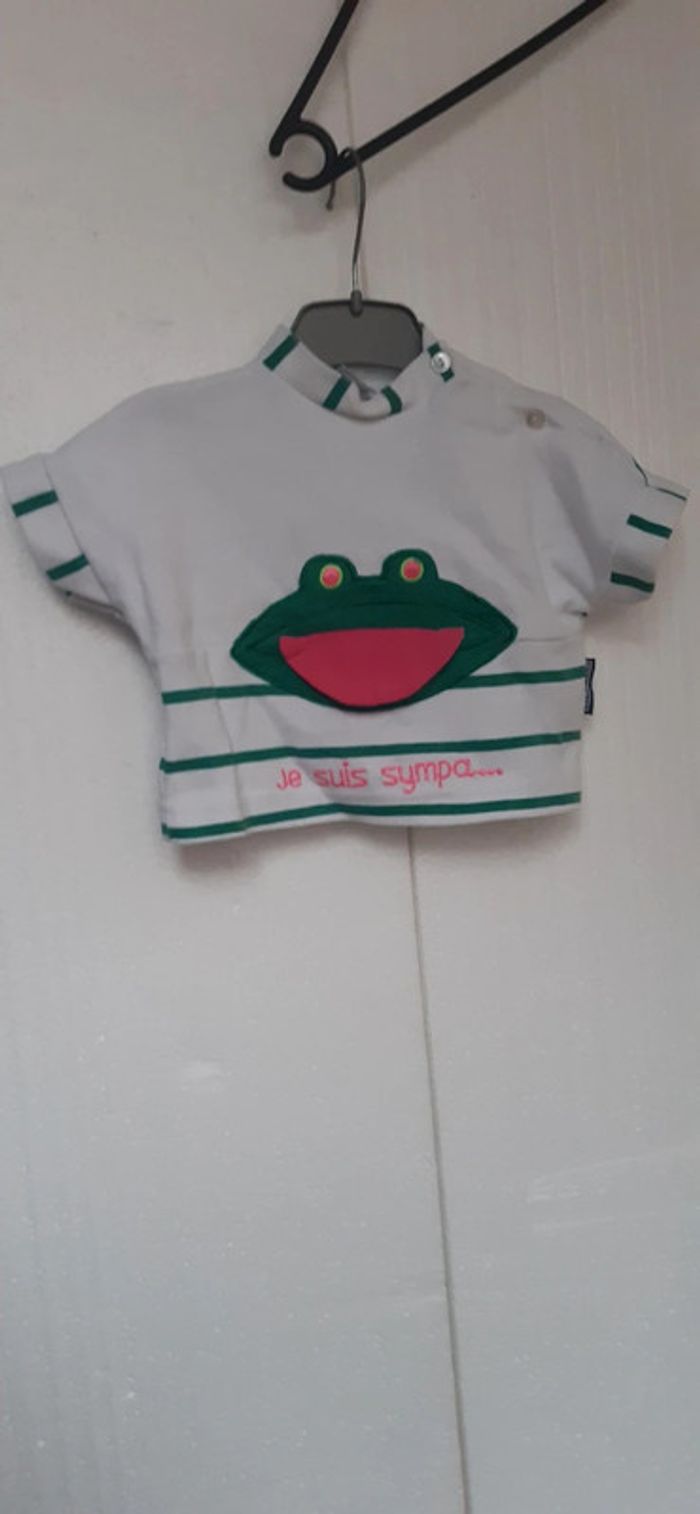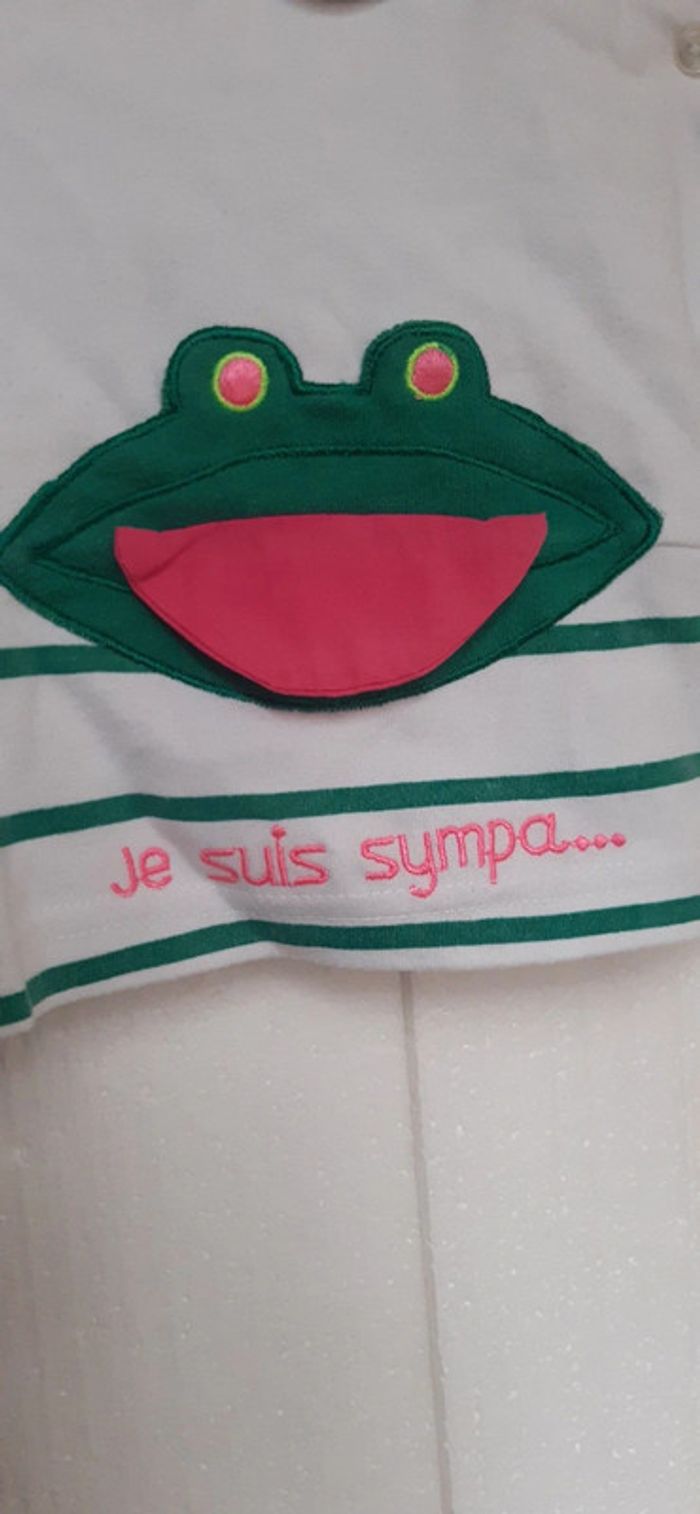 Très bon état, très peu porté. 6 mois. Motif grenouille Coton, Polyester. Pti caïd. Rayé Blanc vert. rose. #lauralolo84trèsbonétat #lauralolo84garçon6mois #lauralolo84garçonété #lauralolo84garçonmisaison #lauralolo84garçonhiver #lauralolo84kiabi