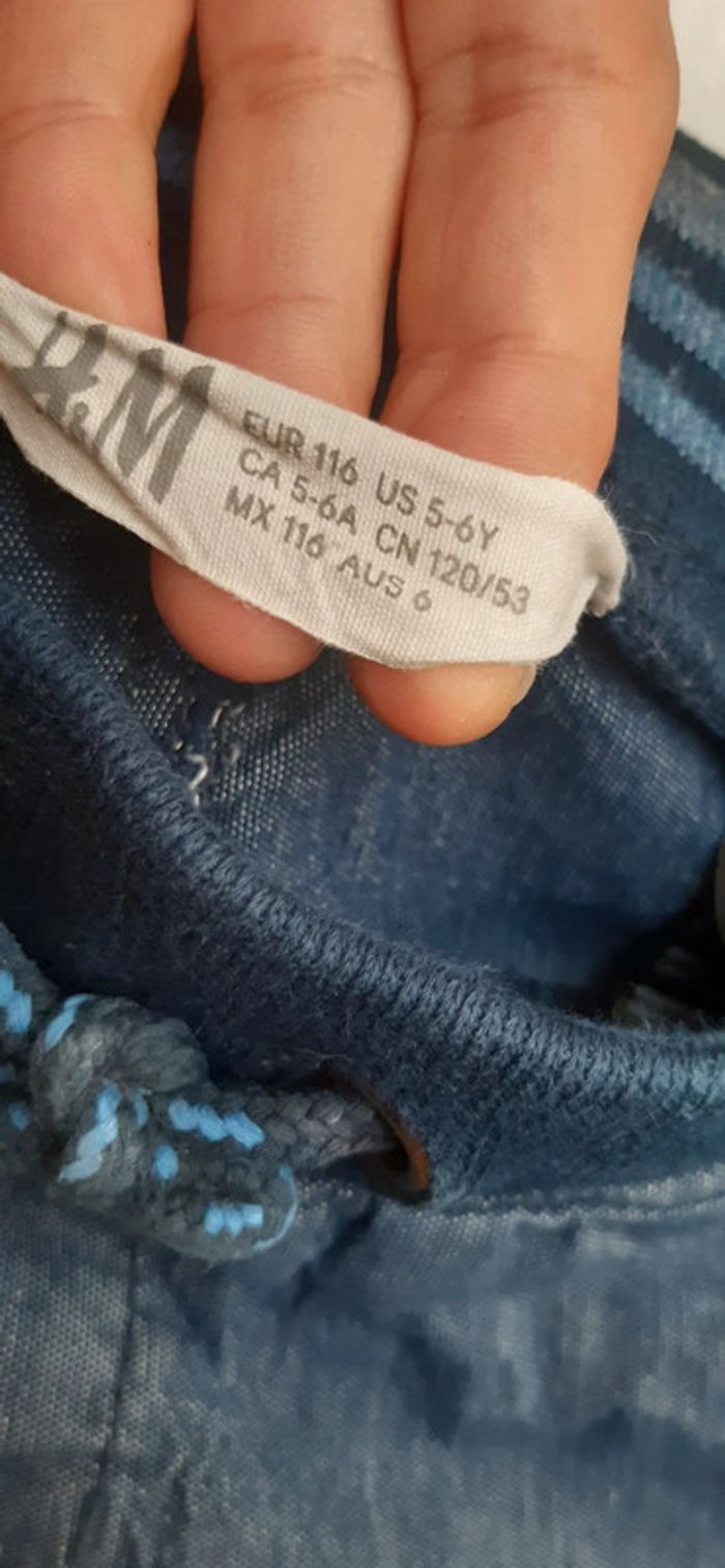 Très bon état peu porté. 5-6 ans 116cm. taille correctement. 100% coton voir photos. Bleu marine. Taille élastique . H&M