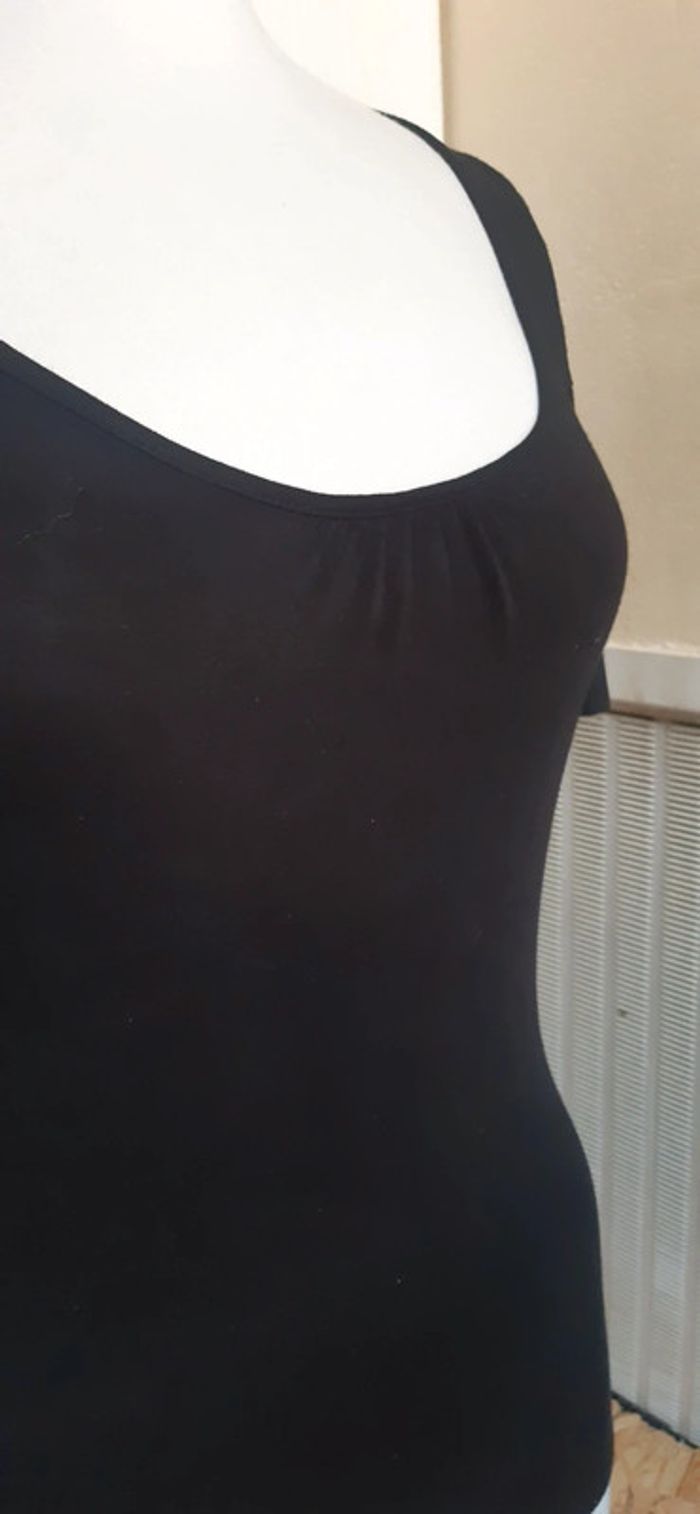 Très bon état très peu porté. Taille 36 S. Porté par un mannequin de taille 36 S. Noir. Mim. Matière élastique. Manches dénudée. Mesures sur demande. #lauralolo84trèsbonétat #lauralolo84femme36 #lauralolo84femme36teeshirt #lauralolo84femmeété #lauralolo84femmemisaison #lauralolo84mim