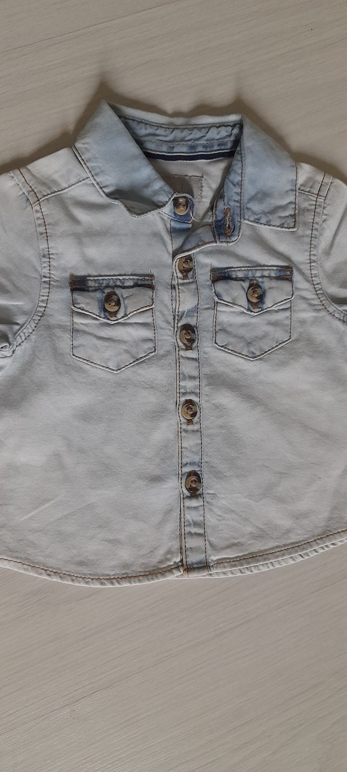 Chemise T 0/3 mois Marque PRIMARK Couleur jeans délavé Attache central boutons 2 poches poitrine Neuf jamais porté