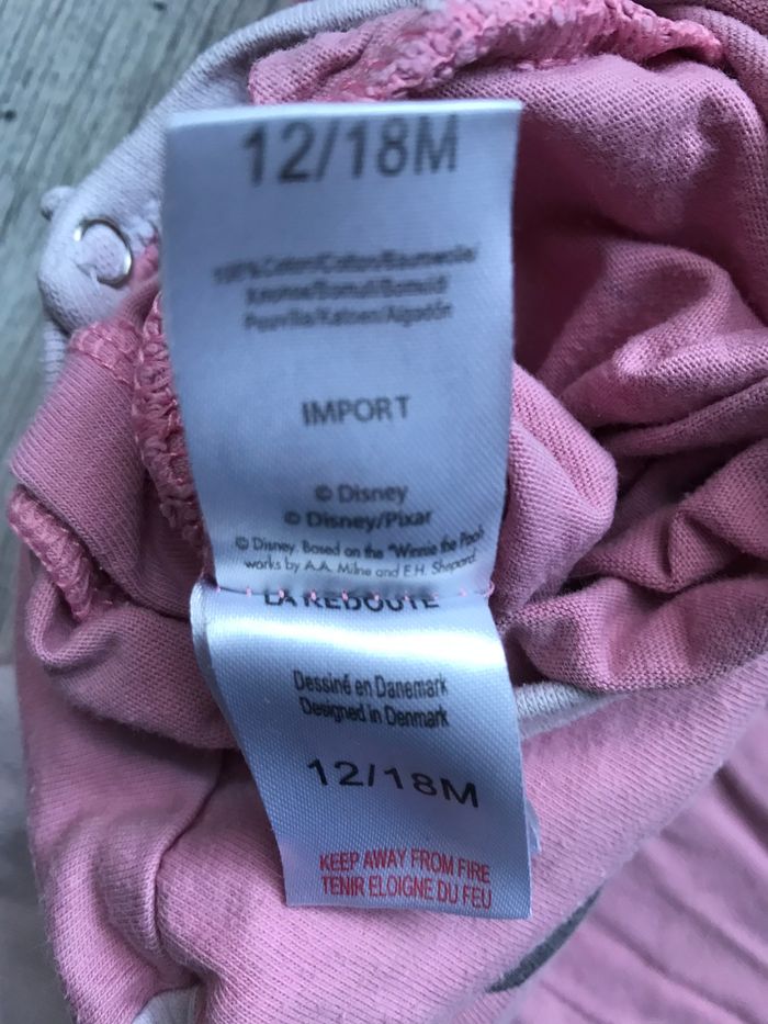 pyjama fin une pièce de la licence Minnie de Disney taille 12 mois (12/18 mois sur l’étiquette mais taille 12 mois) traces d’utilisation occasion, bon état