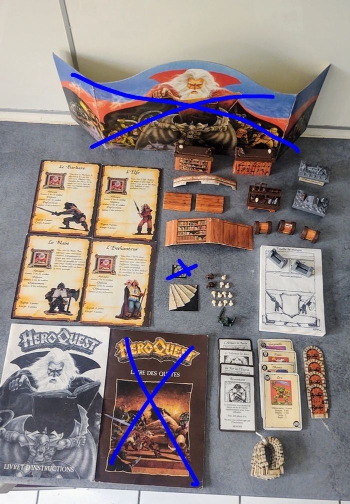 Pièces détachées pour le jeu Hero Quest de 1990. N'achetez pas l'annonce, sauf si vous voulez tout le lot de base, sinon merci de me faire un message avec votre sélection. Attention certains éléments de la photo ont été vendus, cf détails ci dessous.