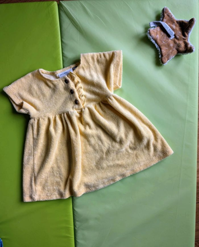 Robe tissu éponge jaune pâle Marque Bel&Bo baby Jamais portée #lylli77380_tailles6mois