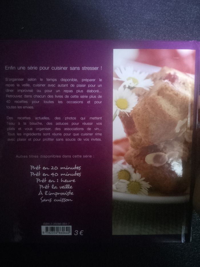 Vends en bon état un livre de recettes pour cuisiner sans stresser. 96 pages. Le coin du haut est un peu abimé. Édition Chlorophyl.
