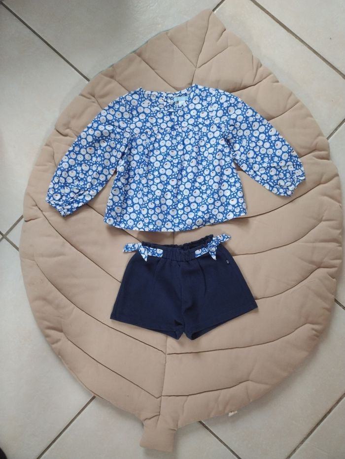 Ensemble blouse et short porté qu'une seule fois. Parfait état 23 mois