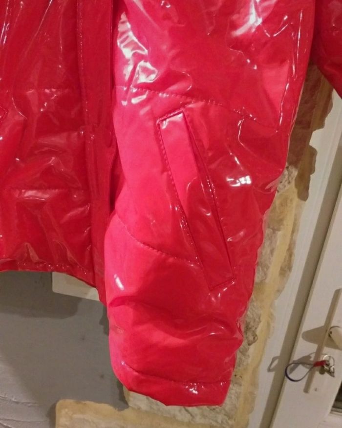 Joli manteau bien chaud Disney rouge avec fermeture et pressions, fermeture pour resserrer les manches ( tout petit accro sous la manche gauche)