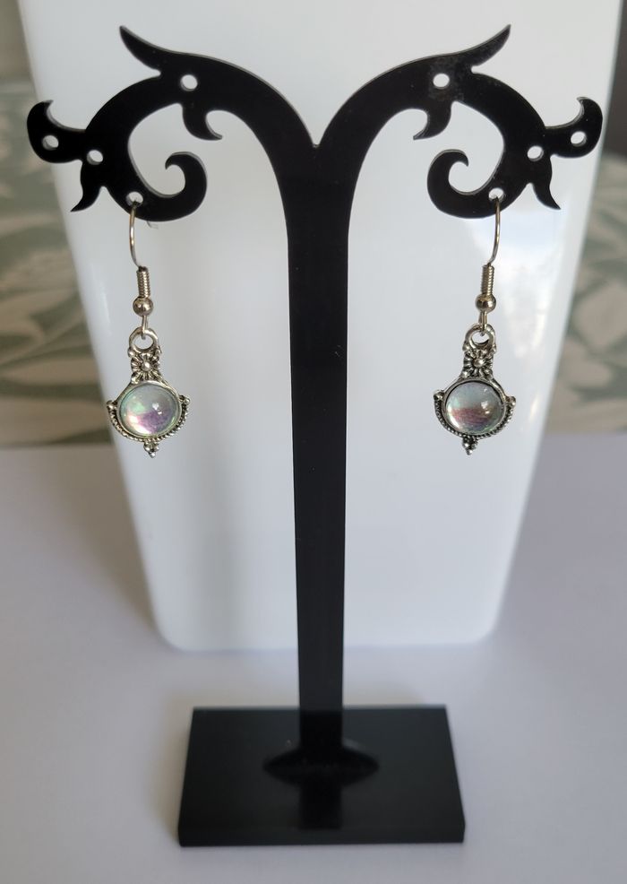 BOUCLES D'OREILLES PIERRE REFLETS MULTICOLORES ! NEUF !
