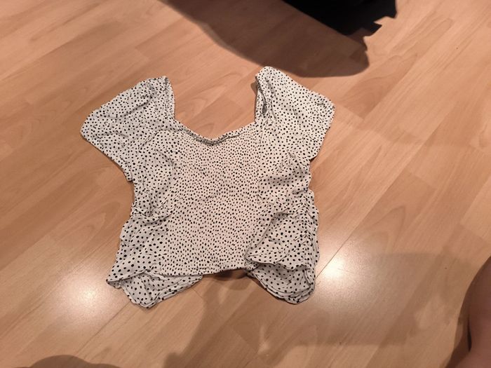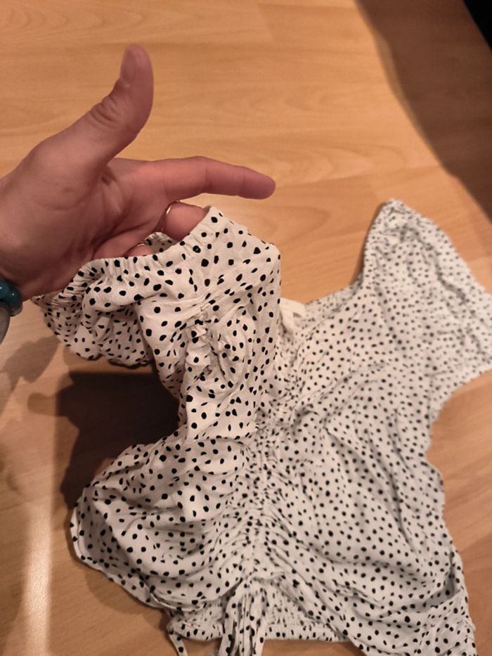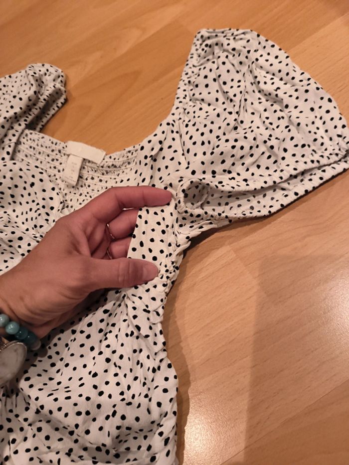 Top court blanc à pois noirs H&M taille L - photo numéro 7