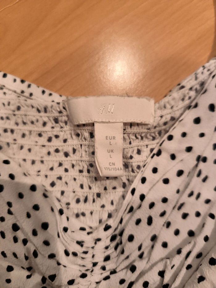 Top court blanc à pois noirs H&M taille L - photo numéro 10
