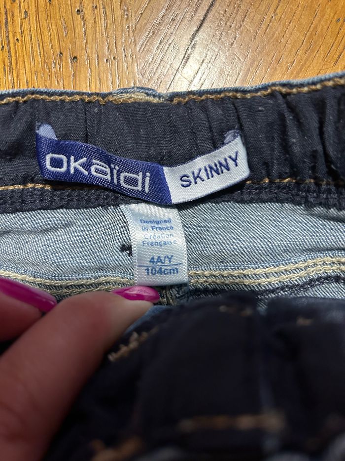 Short en jean skinny avec élastiques pour régler la taille Okaïdi Taille 4 ans en très bon état.