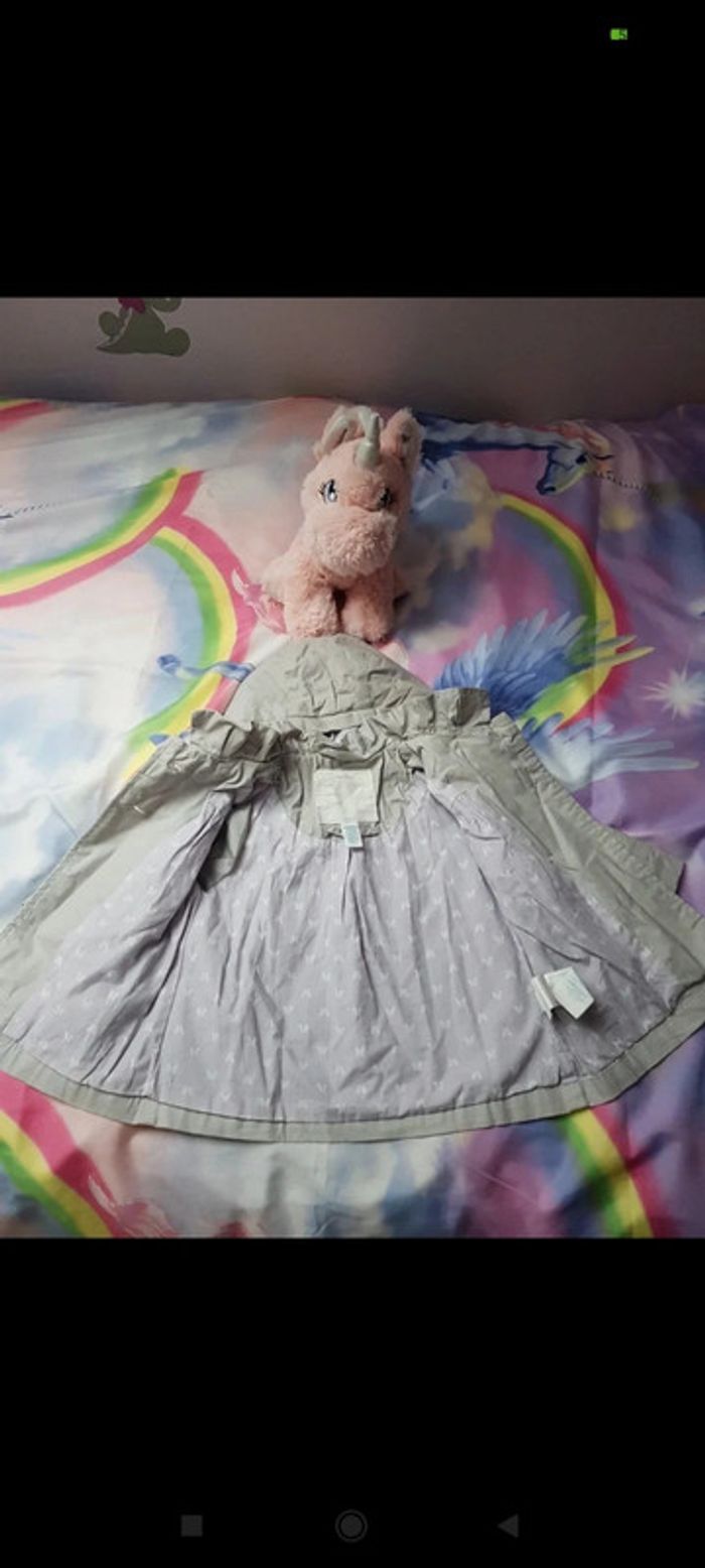 Joli imperméable coupe vent avec capuche gris clair avec doublure interieur coton avec petit noeud. Très peu porté état quasi neuf. #pepettechoupette_6mois #imperméablefille6mois #coupeventobaibi
