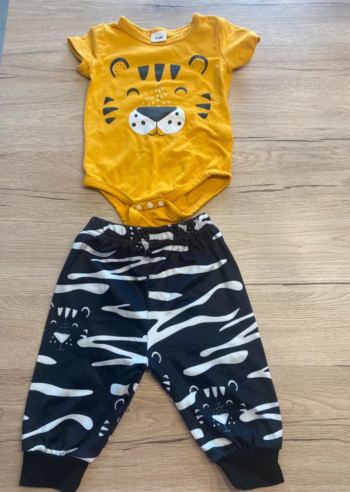 Ensemble tigre bébé Taille 0-3 mois Pantalon + body manches courtes