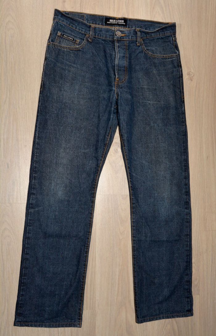 jean homme bleu marine uni coupe droite en coton taille 44 - photo numéro 1