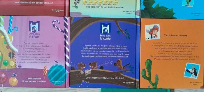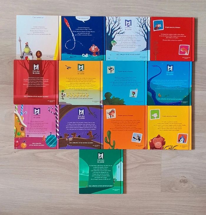17x16 cm Environ 30 pages chacuns Auteurs : Alexandre jardin, Hervé le golf, Marc Levy.. Contient : Heureux comme un roi Malin comme un singe Pas la pomme blanche neige Le singe et le léopard Il faut aider le petit chaperon rouge Coup de pouce au roi grenouille Le lièvre et la tortue Ne change rien petite sirène Gare à l'ogresse hansel et gretel A vous de jouer les musiciens de brème La laitière et le pot au lait Le chat botte à la rescousse Le loup la chèvre et le chevreau Pas de vente à l'unité lot indissociable 9,90 le lot