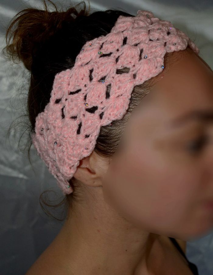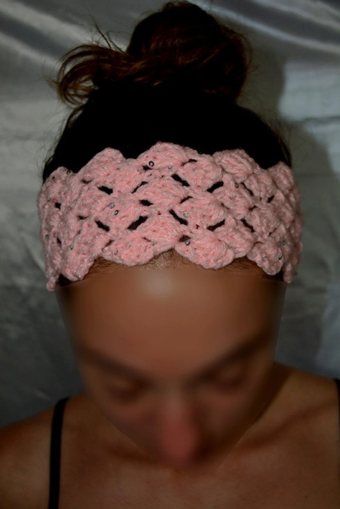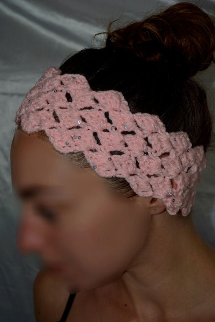 bandeau cheveux rose crochet fait main