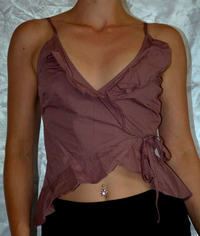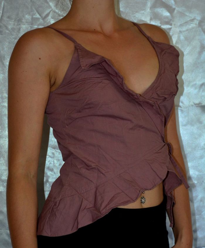 débardeur cache coeur couleur prune taille S en coton - photo numéro 3