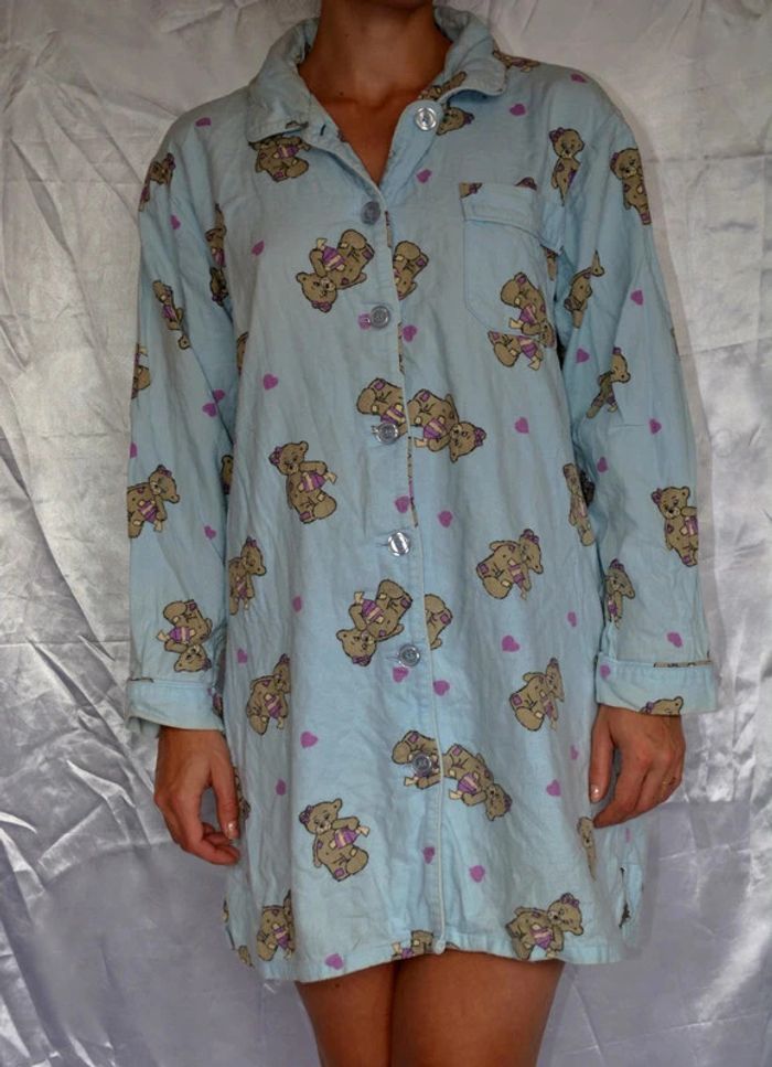chemise de nuit bleu clair motif nounours taille M - photo numéro 1