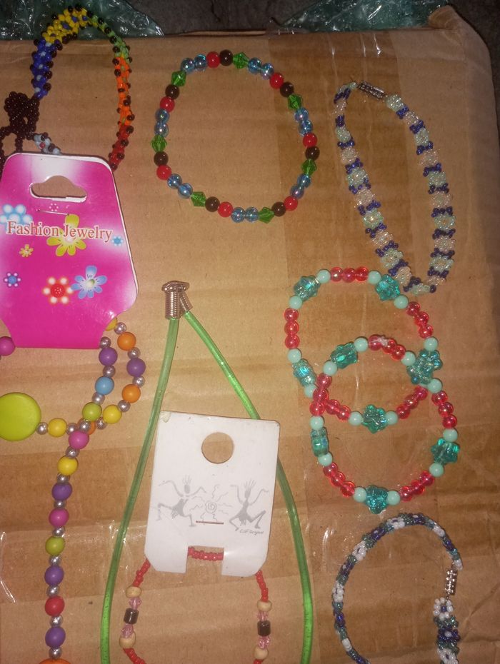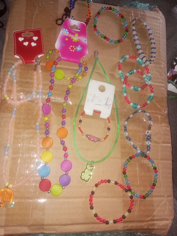 Lot bijoux enfant 11 bracelets elastiqués et différents et 5 colliers