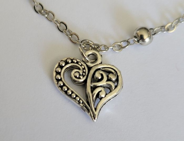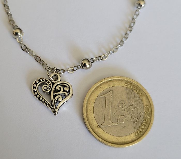 CHAINE CHEVILLE MAILLE BOULE PETIT COEUR ARGENTE ! NEUF! - photo numéro 4