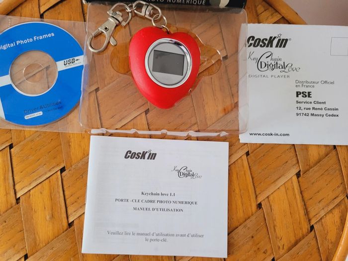 Vintage Porte clef cadre photo numérique COSKIN Key Chain Digital Love cœur écran Cadre Photo Numérique 1.1 pouces (3 cm) Fonctions générales :Affichage de l'heure Fonction réveil Affichage et réglage du calendrier Mode d'affichage : manuel ou transition automatique Mémoire intégrée :1 Mo Connexions USB : USB 1.1 (Type B) Dimensions tout compris :50 x 54 x 20 mm (HxLxP) ✅ N'hésitez pas à faire des lots, je regroupe les frais de port ! Cela permet de faire des économies ;-) ✅ Préparation du colis dès réception du paiement ✔ 🥳 + de 600 transactions réalisées 💯 Vendeur 5/5 étoiles ⭐️⭐️⭐️⭐️⭐️
