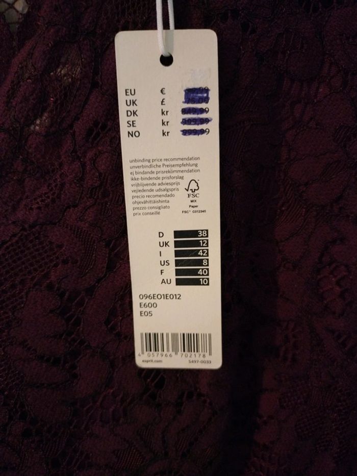 Robe bordeaux Marque Esprit Taille 40 Neuve avec étiquette