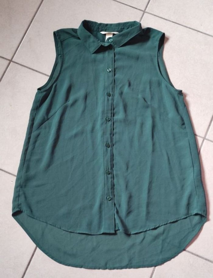 Chemisier vert a matière fluide et légèrement transparent de chez h&m sans manche. Taille 36 En parfaite état