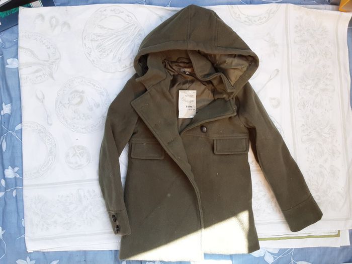 Manteau neuf avec étiquette Capuche amovible Épais Fermé avec 3 boutons sur la moitié du manteau Vert Taille 8 ans #stef59dkcc8