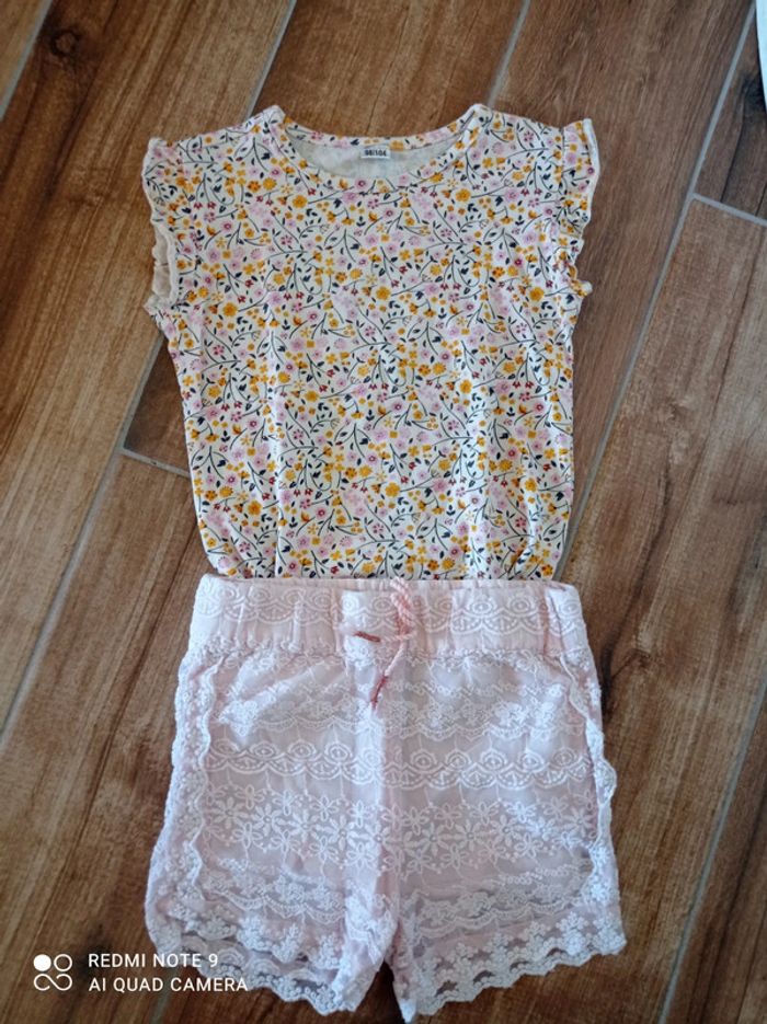 Ensemble short dentelle rose Orchestra+ tee short liberty 4 ans