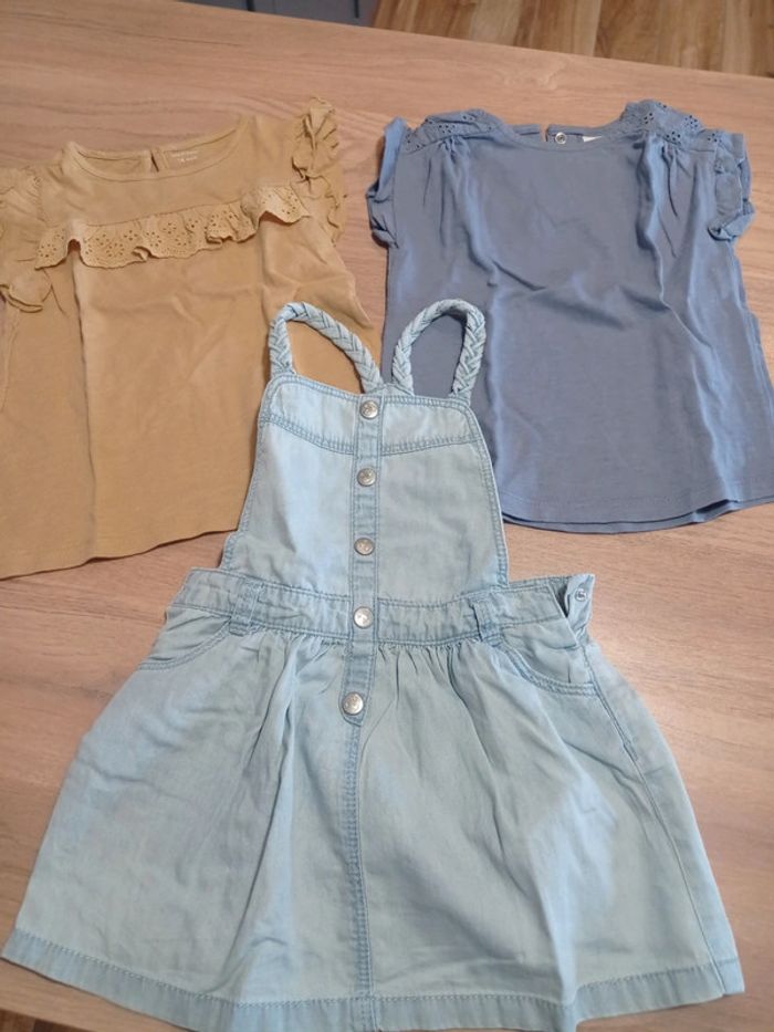 Ensemble 18 mois robe Chambray+ 2 tee shirt broderie anglaise 18 mois - photo numéro 2