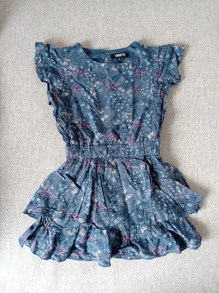 Robe a volants bleue fleurs et papillons Liberto 4 ans - photo numéro 1