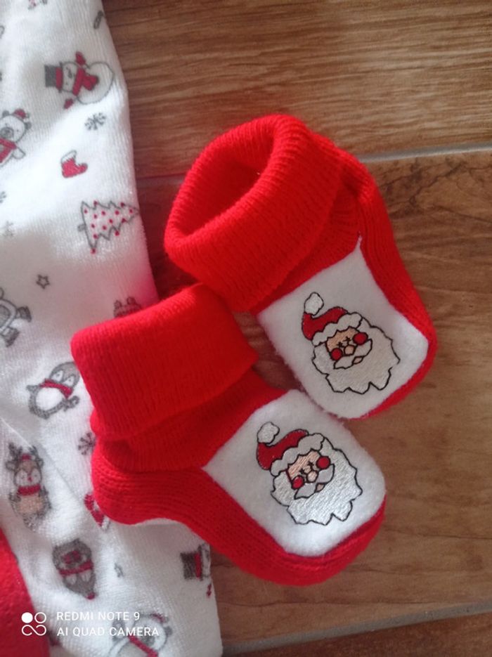 Pyjama Noël Rennes et bonhomme de neige+ chaussons rouge père Noël