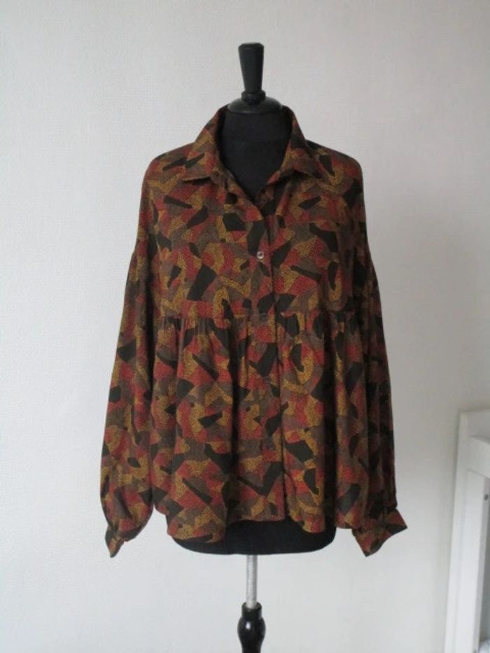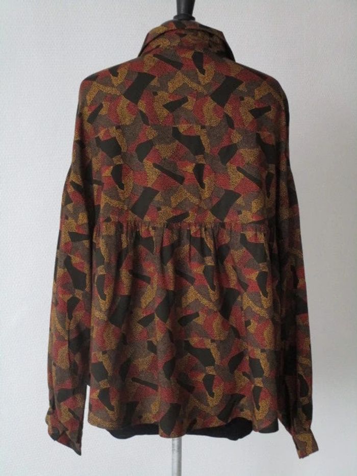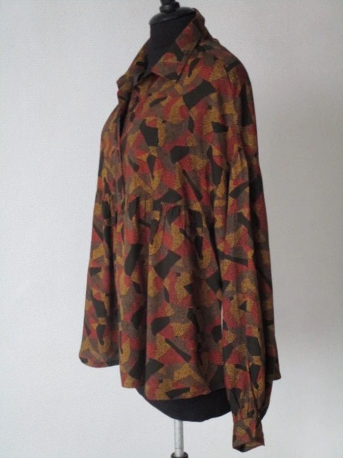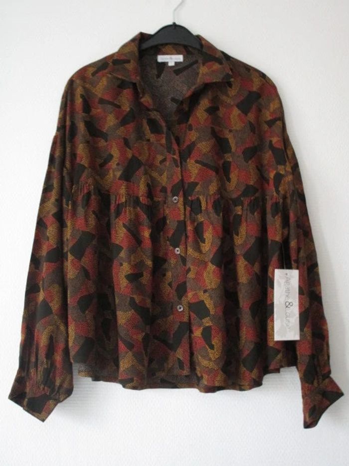 Blouse de marque Agathe & Louise taille 2 soit 40 Noire imprimé moutarde, kaki et rouille Manches raglantes Forme fluide / ample Manches longues fluides également Totalement boutonnée 100% viscose Longueur : 62 cm NEUVE avec étiquette Prix boutique : 66 euros #mamanbrade59femme40