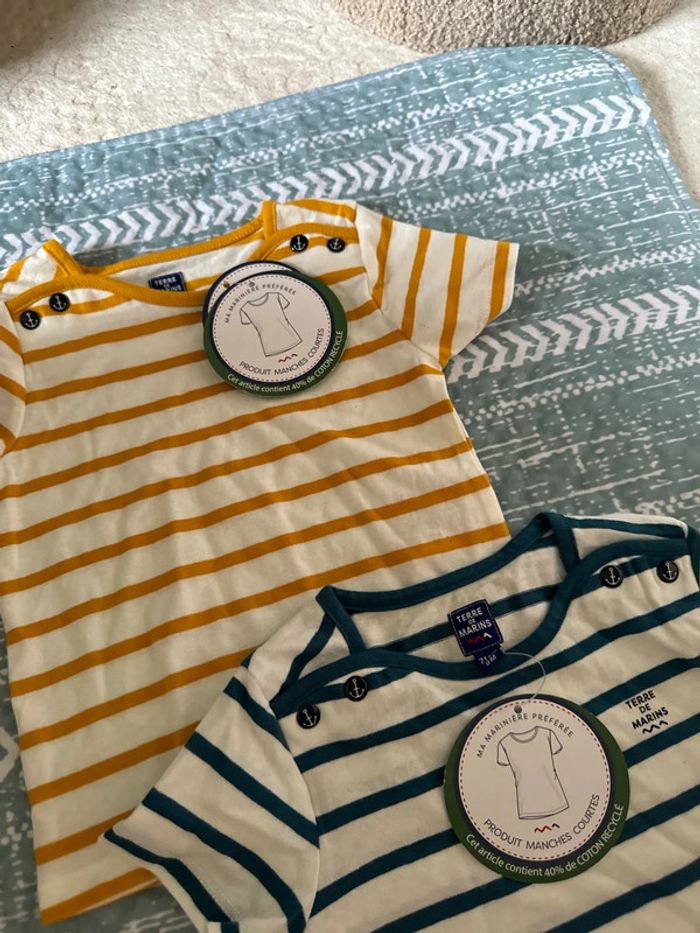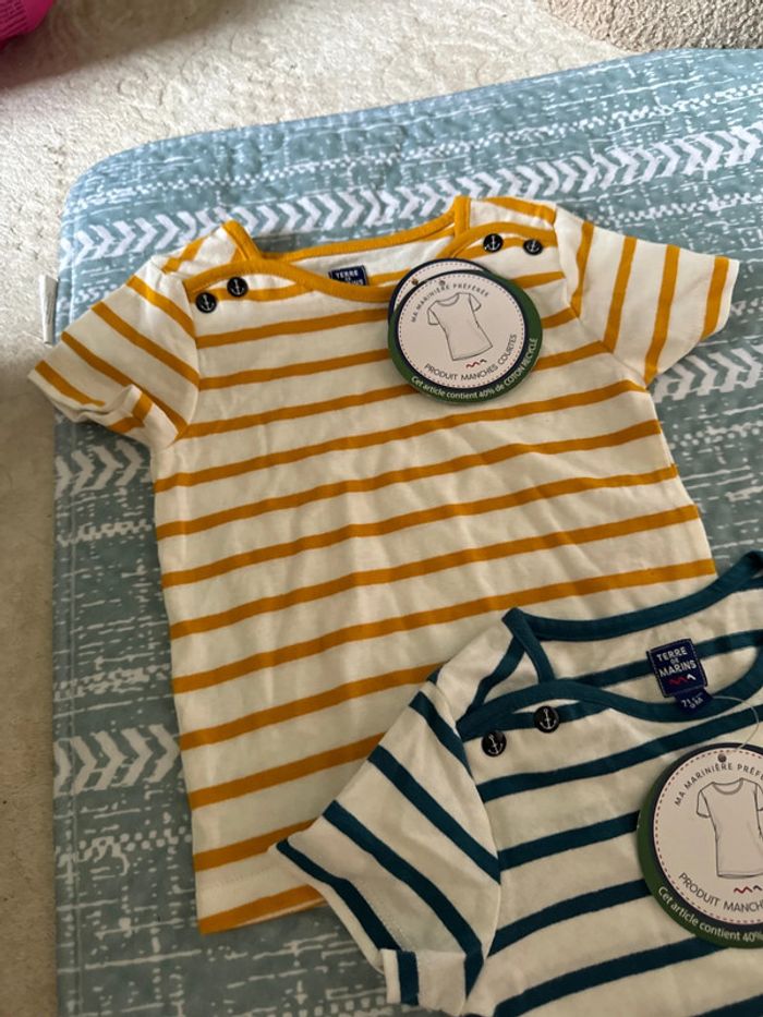2 tee shirts neuf terre de marins 6 et 9 mois